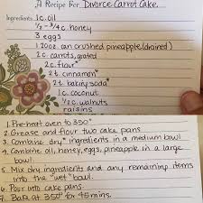 Aug 27, 2020 ... Divorce Carrot Cake - This was my mom's recipe. Named so because my dad sheepishly asked me to make for his birthday, despite the fact they've ...