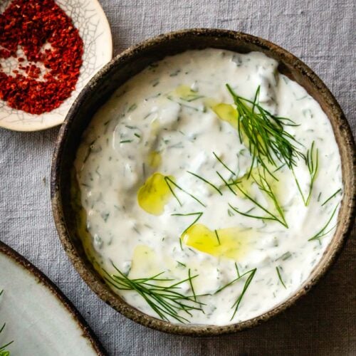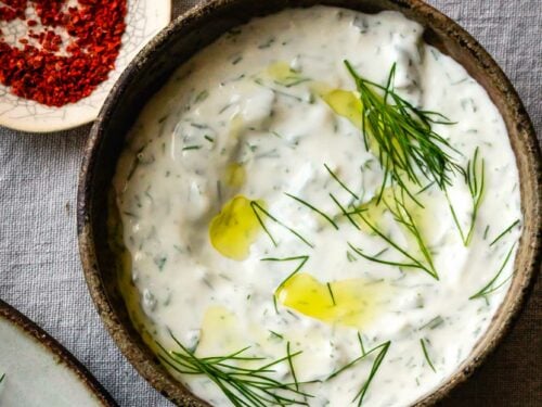 This Mediterranean-inspired yogurt sauce is loaded with kicky garlic, fresh mint and dill, and lemon juice. Quick to make and so good on everything.