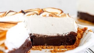 Everyone you know will absolutely lose it over my Smores pie recipe! With a brown butter graham cracker pie crust, a fudgy brownie filling and clouds of torched meringue, this showstopper of a dessert looks super fancy but is incredibly easy to make.