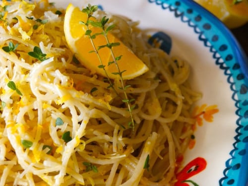 This pasta dish is light, delicious and perfect as an entrée or a side dish. It's quick and easy to make a lovely Meyer lemon pasta sauce. You might just make it your go-to recipe.