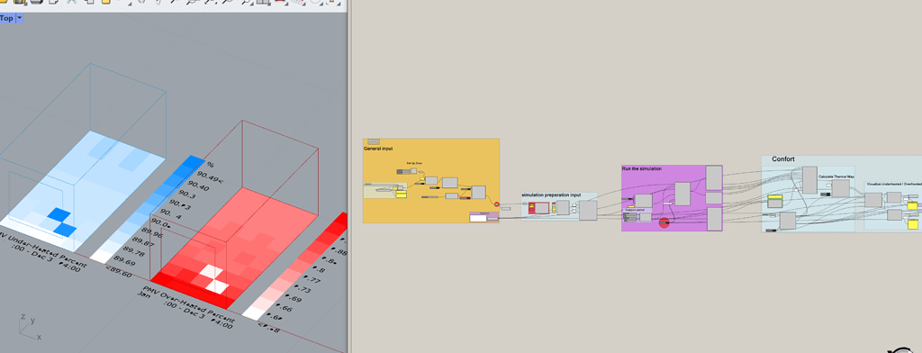 Hi everyone, I am doing an analysis to obtain the annual Thermal Comfort Autonomy (overheating map and underheating map) for a shoebox office. the visualization (as shown in the picture below) is not homogeneous, I am t…