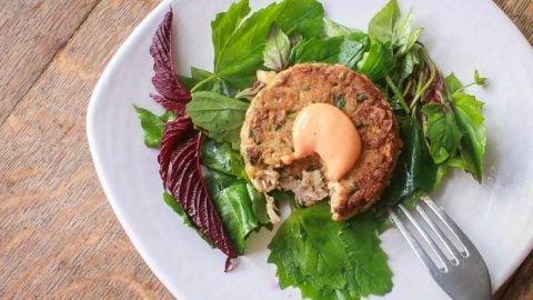 - To cook the cakes, form 4 oz patties of the mixture (it will be delicate, don’t worry—the egg will set as they cook). For the most refined look, form the cakes using a ring mold.
