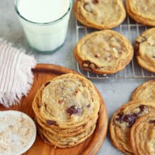 Irene on 2023-11-25 (5 stars): Delicious! Browning the butter gives your dough a richness and depth of flavor. I shaped the cookies and froze them to bake when wanted!! Oh well, they’re so delicious, they’re all baked and eaten!!! My new, go to, chocolate chip cookie recipe now! Thanks?.