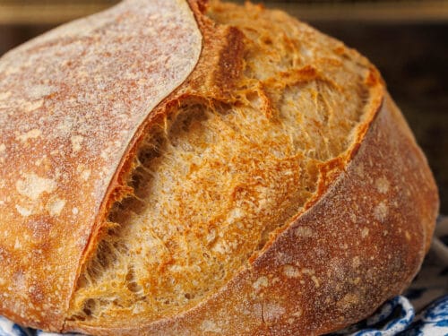 Marie on 2026-03-25 (4 stars): Hi, love the recipe but the wording in the recipe and in the video is just a bit confusing. Step 2 and step 3. End of step 2 you have dough resting for 4 hours. Then step 3 is stretch in fold over four hours. Are these the same 4 hours or is step 2 & 3 a total of 8 hours. When you end step 2 with a period. I take this as let it rest for 4 hours before stretch and fold. Went to your video and it is confusing also. Question; after refrigeration do you bring it to room temp before baking or straight to oven? This is not mentioned. Have a loaf about to go in to oven.