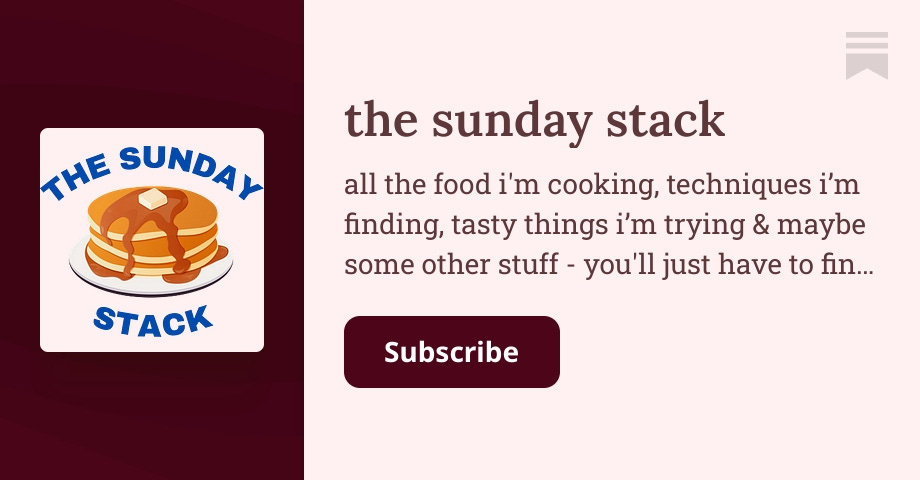 all the food i'm cooking, techniques i’m finding, tasty things i’m trying & maybe some other stuff - you'll just have to find out :*. Click to read the sunday stack, by katie, a Substack publication with hundreds of thousands of subscribers.