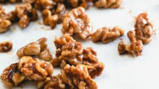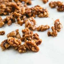 These glazed walnuts have a crunchy coating of pure maple syrup! They're easy to make, healthier than candied nuts, and perfect for salads and snacking.