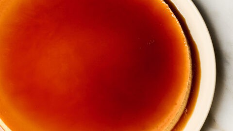 - When ready to serve, run a knife around the edge and then invert onto a large plate. Smack the top of the pan to loosen the flan and then lift up the cake pan. Slice it up and serve.