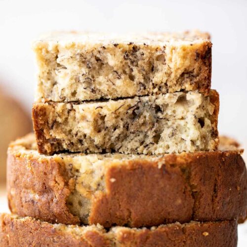 This easy banana bread recipe is my mom's classic banana bread recipe. It's an incredibly moist banana bread that is made with simple ingredients you probably have in your pantry! This is one banana bread recipe you won't want to miss.