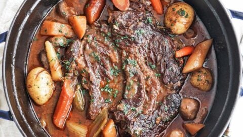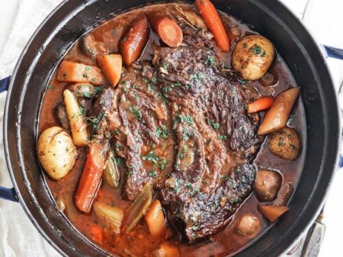 This classic pot roast recipe of roasted chuck roast braised in broth and finished with vegetables makes for an amazing home-cooked meal.