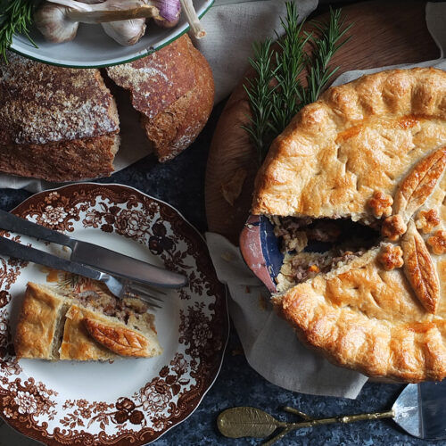 A taste of home, this roast lamb and rosemary pie is made from leftover roast lamb and gravy encased in my grandmother’s crispy, flaky perfect pastry recipe.