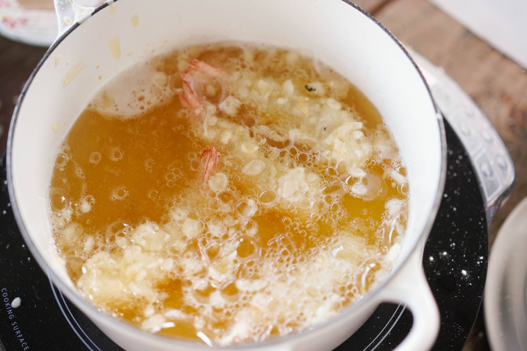 - In a heavy-bottomed pot, add about 2 inches of neutral oil from the bottom of the pot. Heat the oil to 350 °F degrees.