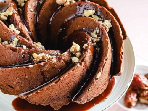 Wendy on 2022-12-06 (5 stars): Hi I made the cake and I can tell it’s going to be delicious. The batter was yummy and not too sweet. I’ve never made a glaze before. You say to glaze before serving but if I glaze ahead of time will it be ok and stay the same? Most of the glaze recipes seem to call for confectioners sugar. Will this make a difference in appearance or taste? Thanks.