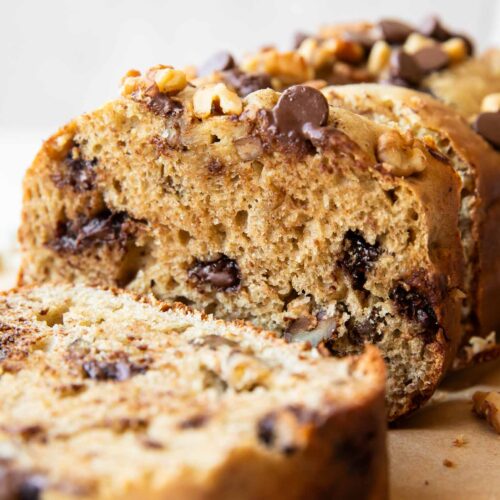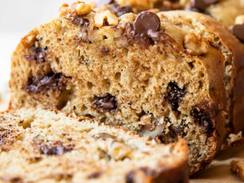 I made this into 8 mini loaves and they turned out perfect - cooked for about 20 minutes. Didn't have any nuts on hand so just used mini chocolate chips. I like it because it's not too sweet. I also used Bob's 1:1 gluten free flour.