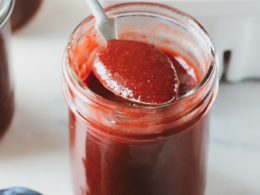 Using an immersion blender, process plum mixture until it’s smooth. (Alternatively, process in batches in a food processor. Once everything is pureed, pour puree back into the Dutch oven. Bring to a simmer over medium heat) Remove from heat.