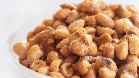 While peanuts are roasting, mix together the chili powder, garlic powder, and sugar.
