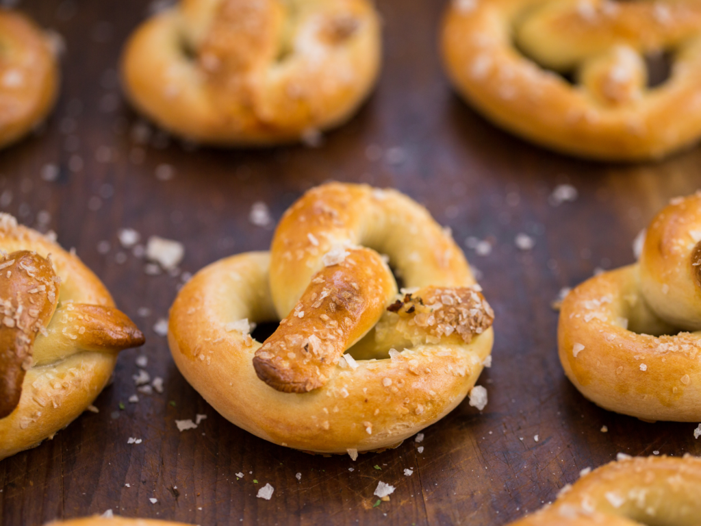 Serve up these delicious baked sea salt pretzels in no time - all you need is a side of yellow mustard and you're sure to win the day!