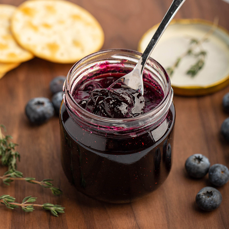 blueberry thyme jam, breakfast, condiment, dessert, easy recipe, quick jam, small batch jam