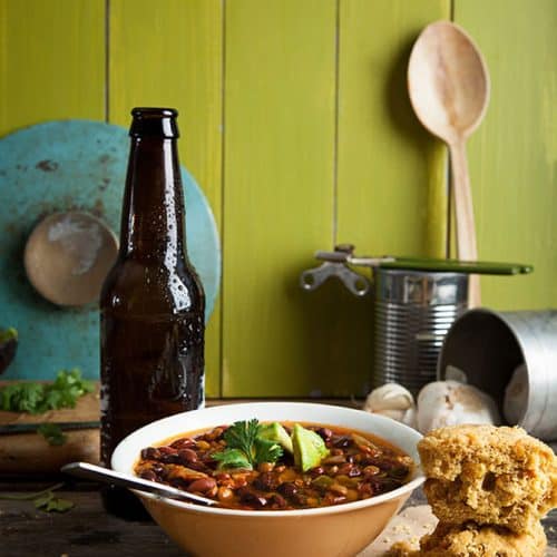 - Add the crushed tomatoes, kidney beans and black beans. Cover the pot, and turn heat down to simmer. Let cook for about 30 more minutes, stirring occasionally. The lentils should be quite mushy, almost melting into the chili. You may also need to add more liquid depending on how much the chili has cooked down. Adding up to two cups more would not be unheard of.