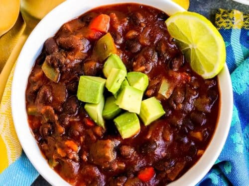 Cathy on 2026-02-10 (5 stars): I made this recipe for my roommates. I consider myself a strait up carnivore. However, after I made this black bean chili it smelled so good that I just had to taste it! I tasted really good. I added a little less chili powder because they don't like spicy. Everyone loved it. I will make it again.